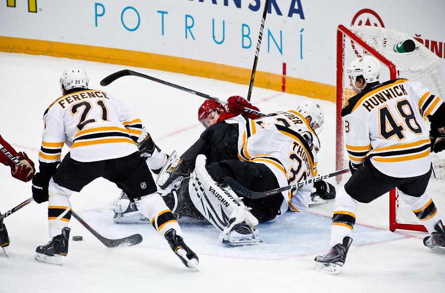 Po dvou letech zahájila americká NHL svůj nový ročník opět v Praze, neboli NHL Premiere Boston Bruins vs Phoenix Coyotes. Taková událost se kromě zájmu diváků těší i pozornosti novinářů. Aby se všichni fotografové do haly vlezli, byla jim přidělena konkrétní místa – v tiskáči byl vyvěšen rozpis, kam kdo na kterou třetinu může (měl by). Konkrétně mě čekaly dvě třetiny na tribuně a jedna u ledu na pozici 103 – 104 A.