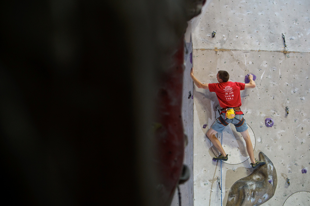 V nedělních dopoledních hodinách jsem vyrazil na semifinále Doldy Mistrovství České a Slovenské republiky v lezení na obtížnost 2011 v Lezeckém centru SmíchOFF. Nečekal jsem, že to tam bude tak rozlehlé, jinak bych si vzal 300 mm objektiv na detaily. A opět pomohl atmosféru rozsvítit dálkově odpalovaný blesk.