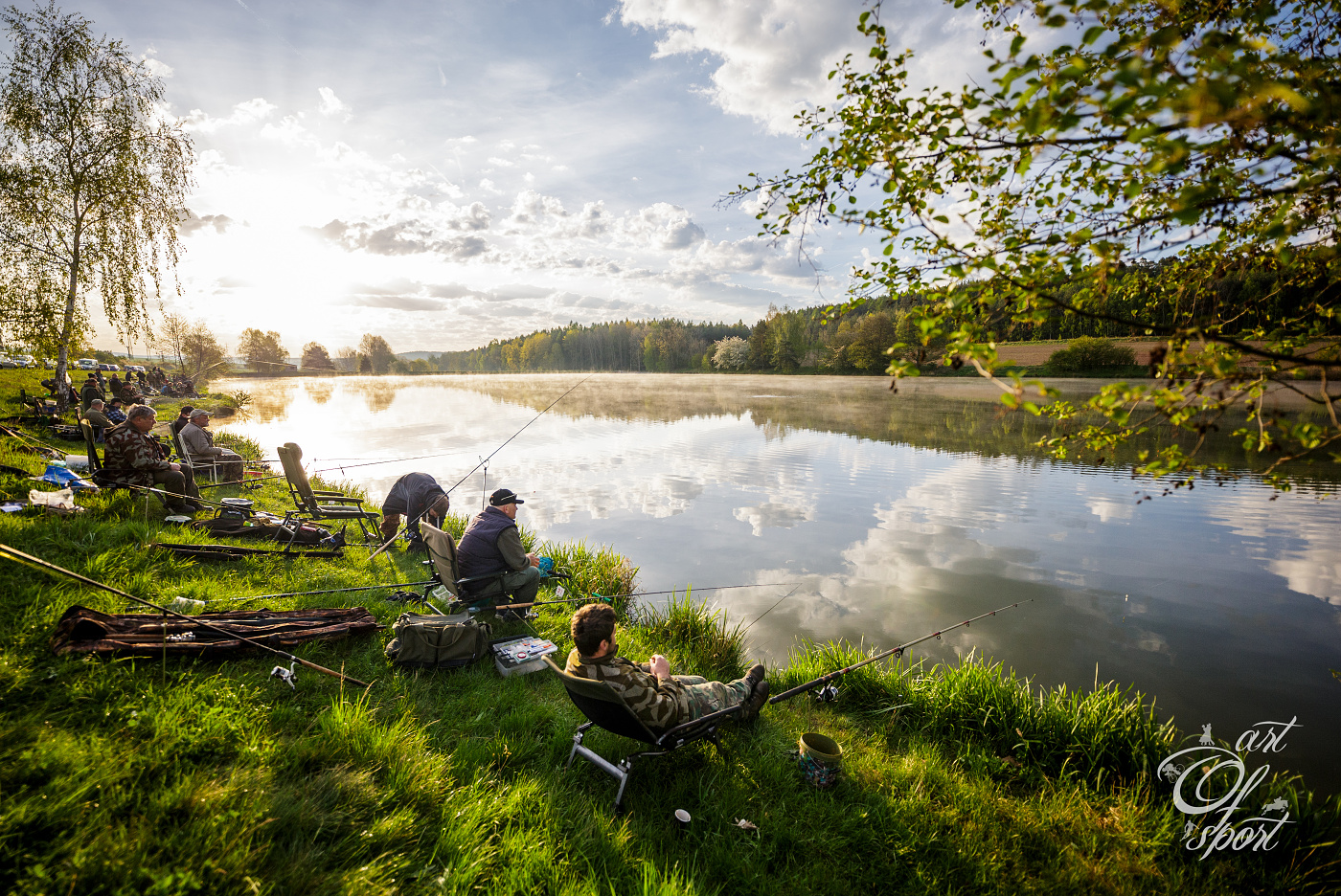 Rybářské závody Rakovnický kapr na závlaze Olešná. Chytat se začalo v 6:00.