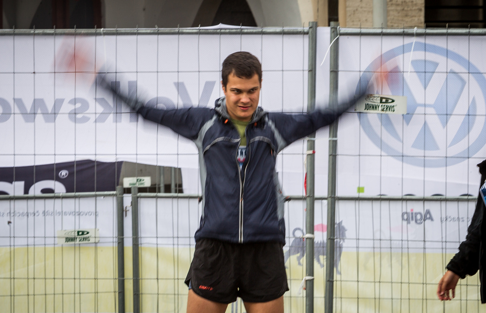Závodníci a závodnice se scházejí dlouhou dobu před vlastním startem závodu, aby si vyzvedli startovní čísla, převlékli se a rozcvičili. Pro fotografa je to ideální příležitost zachytit předstartovní přípravy – rozcvičování, masírování, připevňování startovního čísla, řazení na start a další.