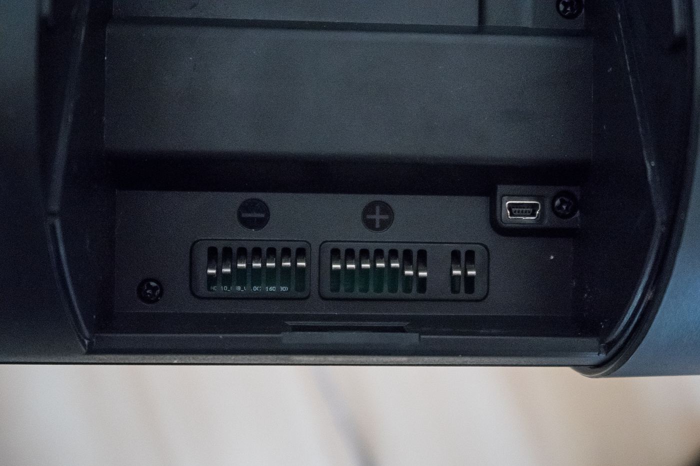 - Detail kontaktů baterie uvnitř blesku a konektoru pro připojení k PC